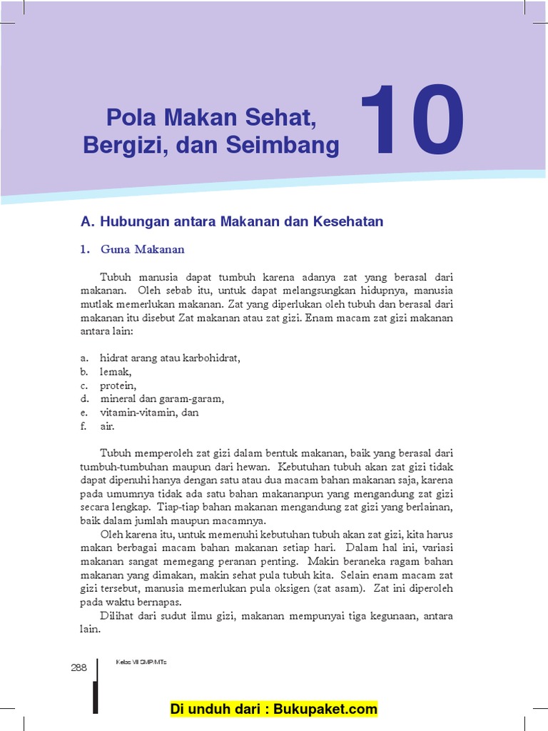 Zat ini diperoleh pada waktu bernapas. Pola Makan Sehat Bergizi dan Seimbang a. Tubuh manusia dapat tumbuh karena adanya zat yang berasal dari makanan.