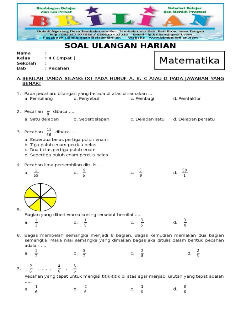 Soal Ulangan Matematika Kelas 4 Pecahan Senilai Download File Guru