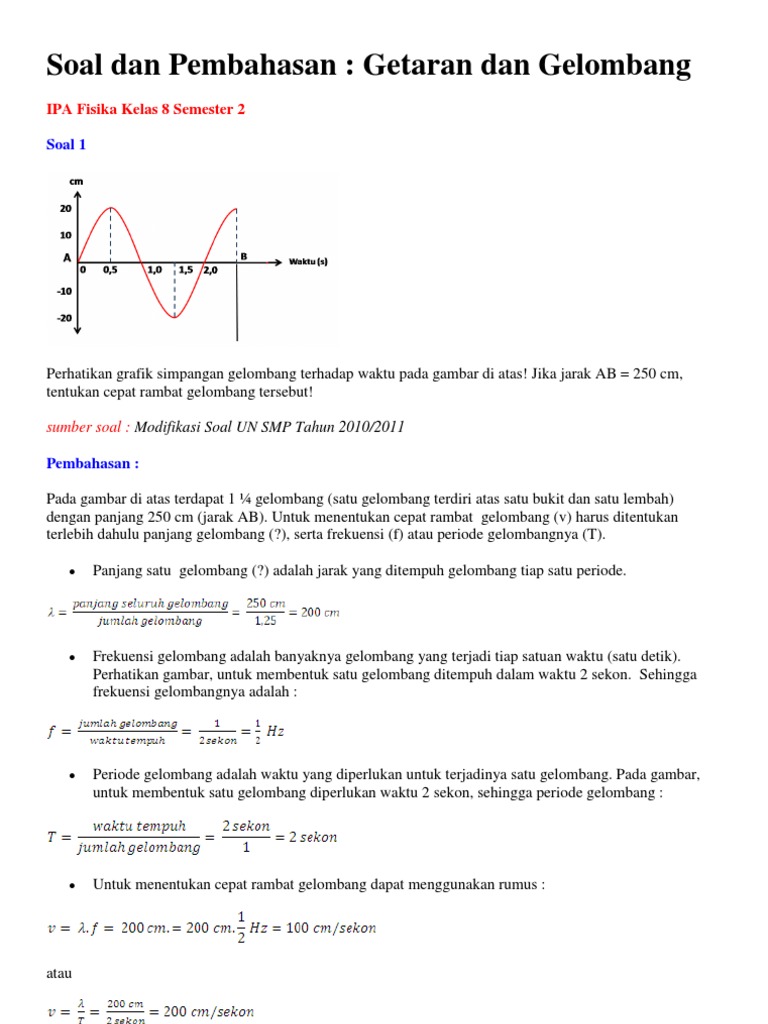 Contoh Soal Dan Pembahasan Getaran Gelombang