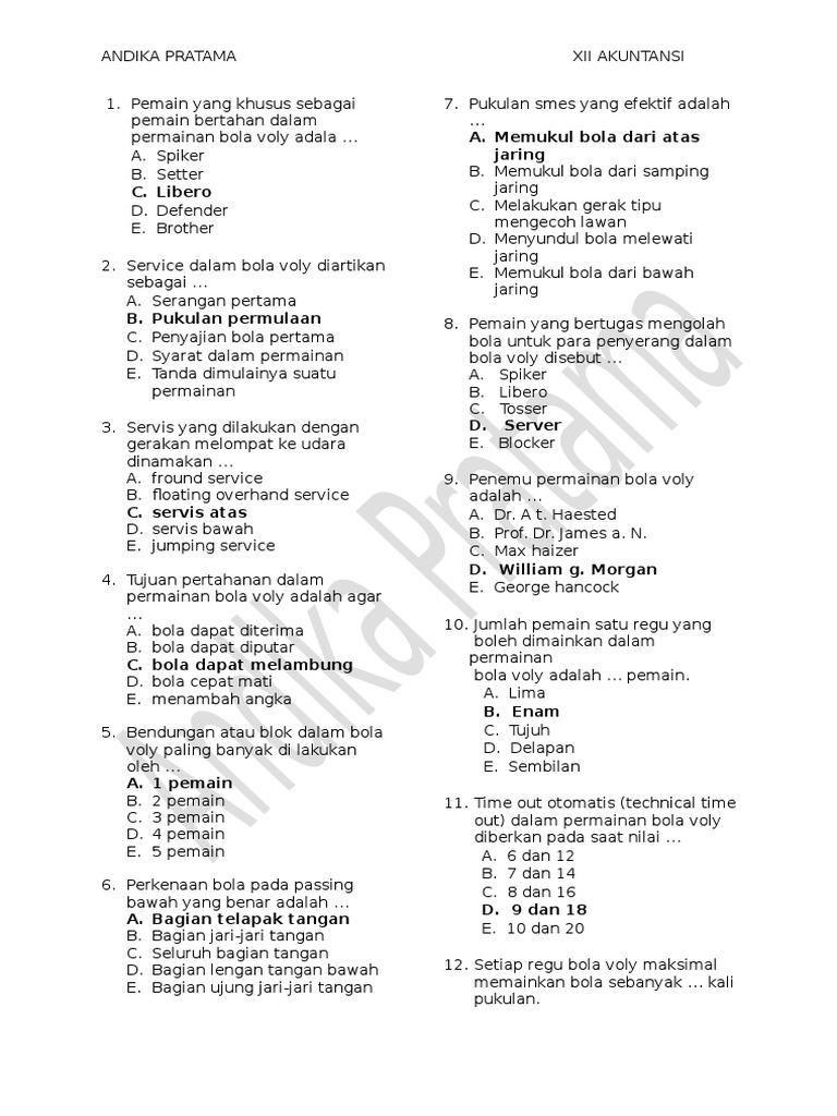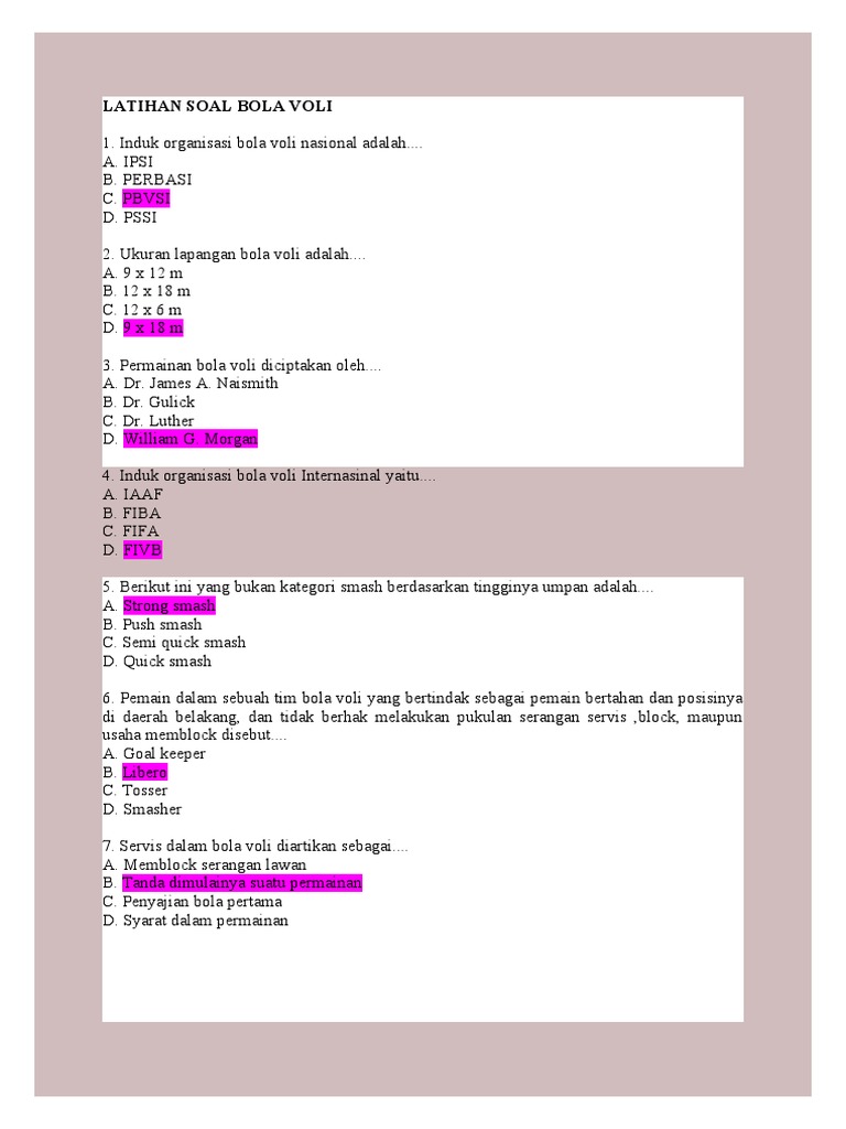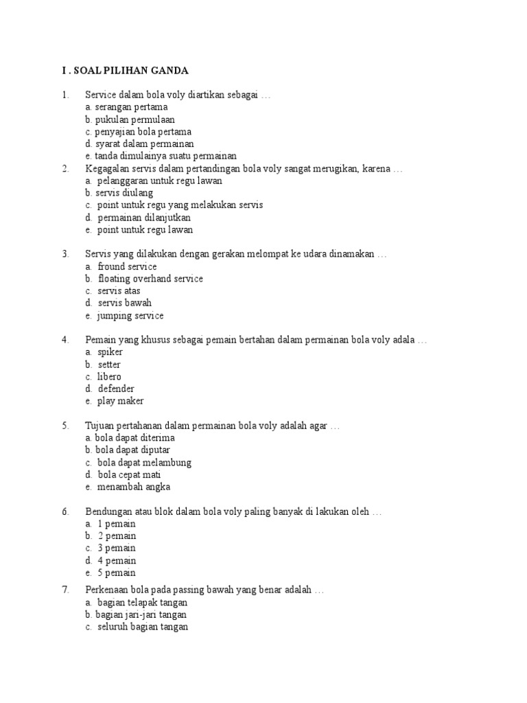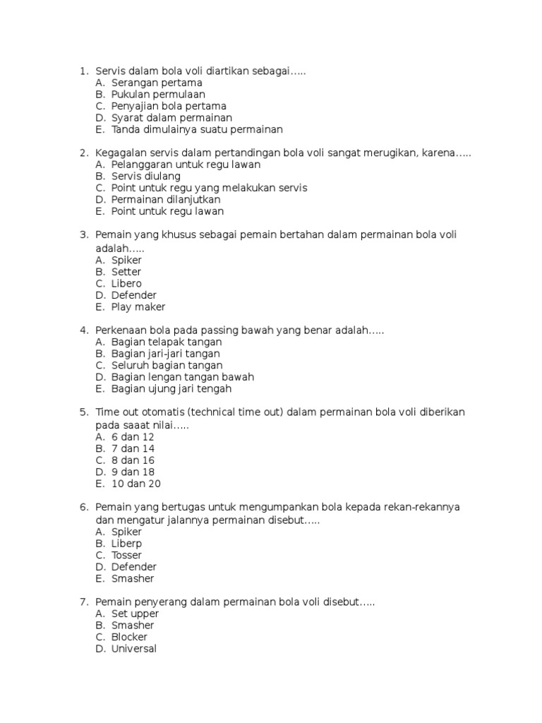 Latihan Soal Bola Voli Kelas 8 Terbaru