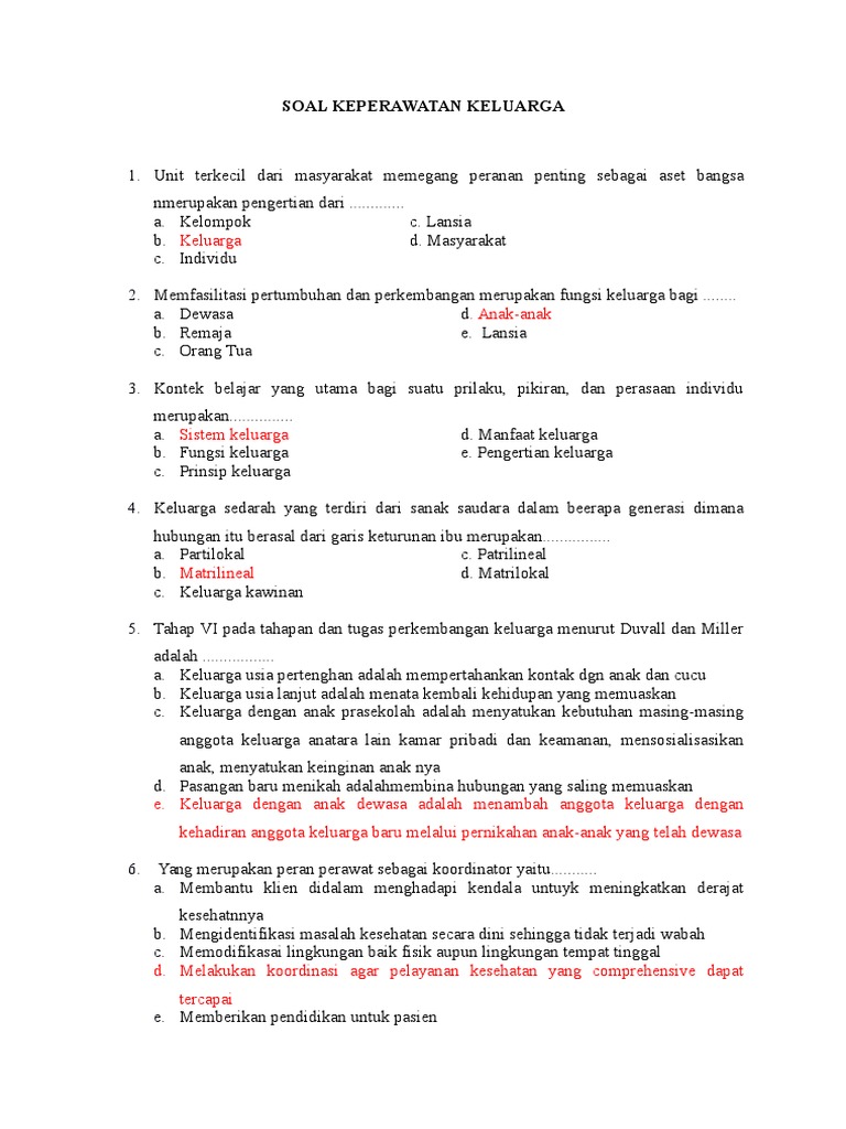 Soal Keperawatan Keluarga Dan Jawabannya Soal Dan Jawaban