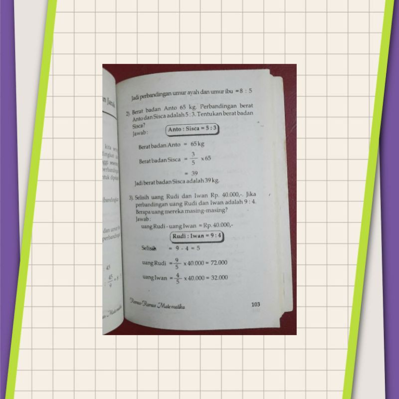 Perbandingan Rasio Matematika Rumus Contoh Soal dan Jawaban. Umur ibu 81 x 5 40. Jadi umur ayah adalah 40 tahun dan umur Andi adalah 16 tahun.