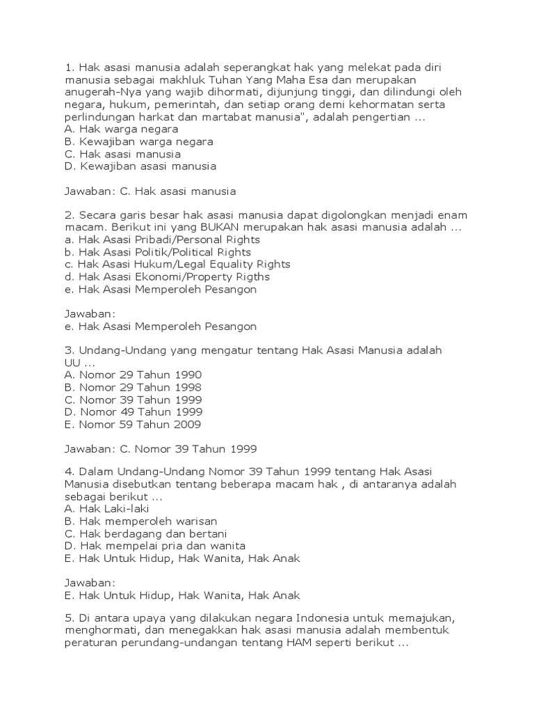 Contoh Soal Pkn Kelas 8 Tentang Hak Asasi Manusia Jawabanku Id
