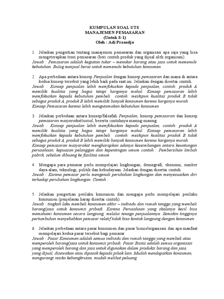 SOAL BAB 1 PEMASARAN DAN MANAJEMEN PEMASARAN 1. Pada artikel kami sebelumnya kami juga telah berbagi Soal UT Manajemen Semester 6 terakhir kami memposting Soal Ujian UT Manajemen EKMA4478 Analisis Kasus Bisnis yang bisa Anda lihat juga. Apakah tiap orang menyukai dan membelinya.